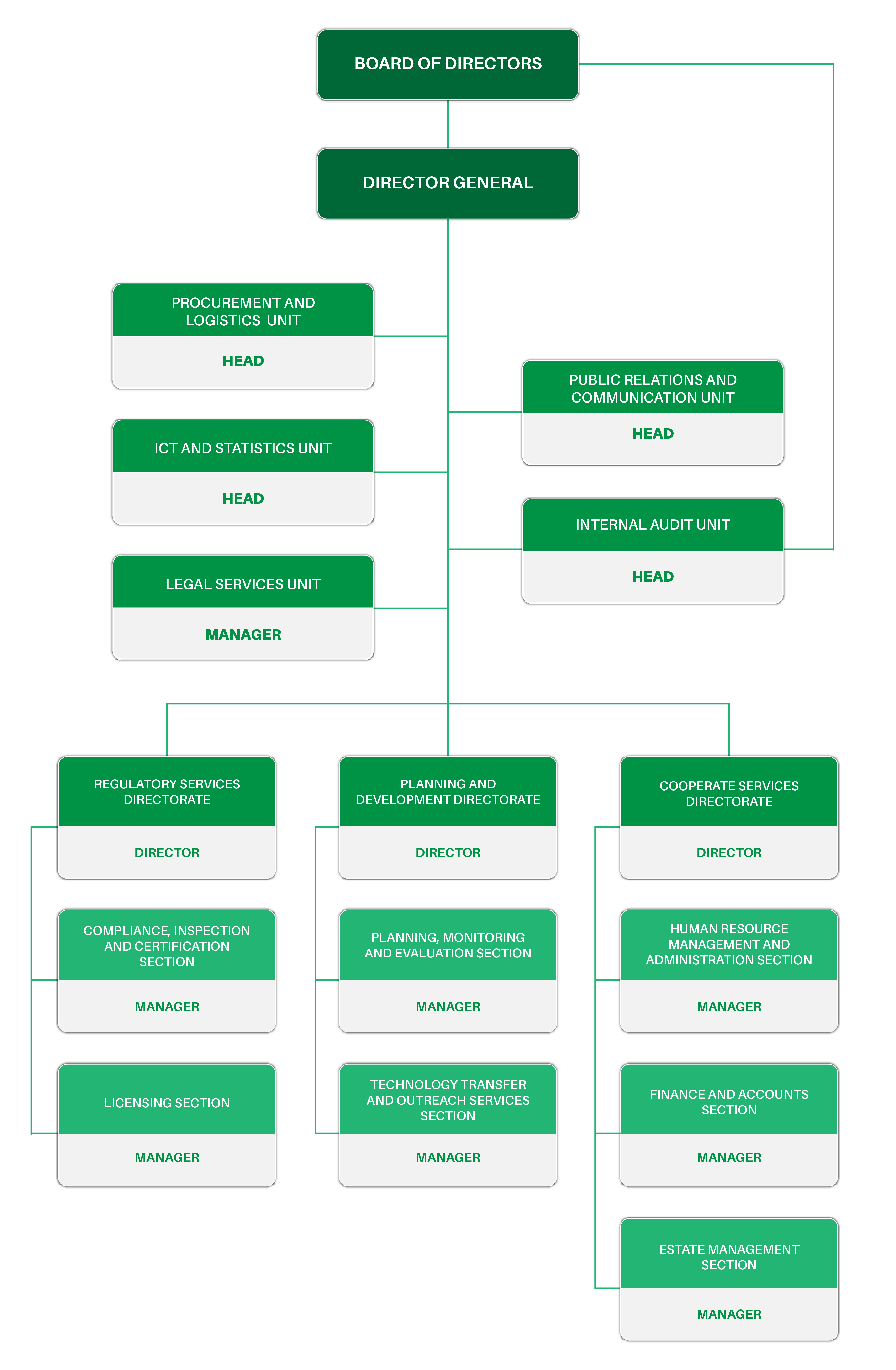 Unaoonyesha mfumo wa kiutendaji na majukumu ya kila idara.